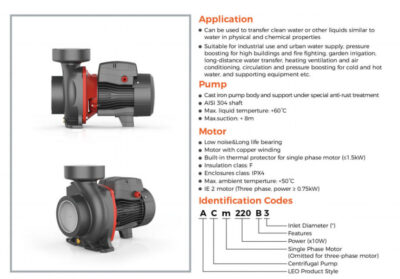 • Toza suv yoki fizikaviy va kimyoviy xossalari suvga o‘xshash boshqa suyuqliklarni pompalash uchun ishlatilishi mumkin. • Sanoatda foydalanish va shahar suv ta'minoti, ko'p qavatli binolarni bosim va yong'inga qarshi, bog'larni sug'orish, uzoq masofalarga suv tashish, isitish, shamollatish va havoni tozalash, sovuq va issiq suv uchun aylanish va bosim o'tkazish, yordamchi uskunalar va boshqalar uchun javob beradi. d.