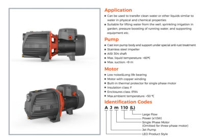 • Toza suv yoki fizikaviy va kimyoviy xossalari suvga o‘xshash boshqa suyuqliklarni pompalash uchun ishlatilishi mumkin. • Quduqdan suv ko'tarish, bog'ni sug'orish, oqar suv bosimini oshirish, yordamchi uskunalar va boshqalar uchun javob beradi.