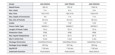 Главная Maishiy nasoslar Oqava va kanalizatsiya uchun suv osti nasoslar AKS-SW