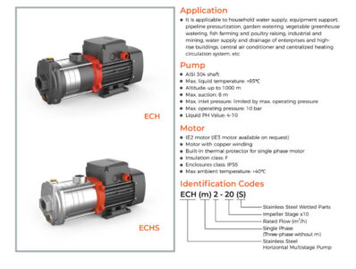 Главная Sanoat nasoslari Gorizontal ko'p bosqichli zanglamaydigan po'latdan yasalgan nasoslar ECH