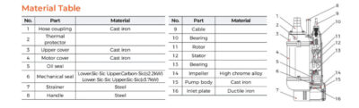 Nasosning materiallar jadvali