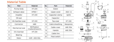 Nasosning materiallar jadvali