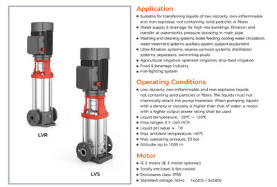 • Vertikal issiq suv va issitish tizimlaridagi bossim uchun maxsus nasoslar