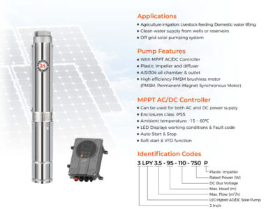 • Qishloqlarni sug'orish, chorva mollarini boqish, maishiy ehtiyojlar uchun suv ko'tarish. • Quduqlardan yoki suv omborlaridan toza suv ta'minoti. • Avtonom quyosh nasos tizimi