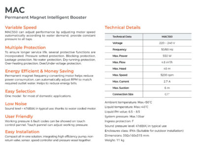 Главная Maishiy nasoslar Suv bosimini kuchaytiruvchi magnitli aqili nasoslar MAC350/450