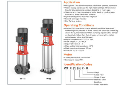 • Suv ta'minoti: magistral quvurlar va ko'p qavatli binolar uchun bosimni oshirish. • Sanoat bosimi: suv ta'minoti tizimi, tozalash tizimi, yuqori bosimli yuvish tizimi va yong'inga qarshi tizim. • Bosimli rezervuar, purkash va trichling sug'orish uchun bosimni oshirish. • Konditsioner, sovutish tizimi va sanoat tozalash.